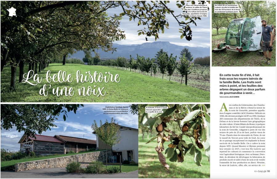 J'ai rencontré Dorothée et Ludovic Belle en pleine récolte de leur production de noix de Grenoble. C'était l'occasion de faire une beau reportage pour le magazine Esprit d'Ici. J'ai donc fait textes et photos. Le reportage est à découvrir en longueur dans le PDF ci-joint!